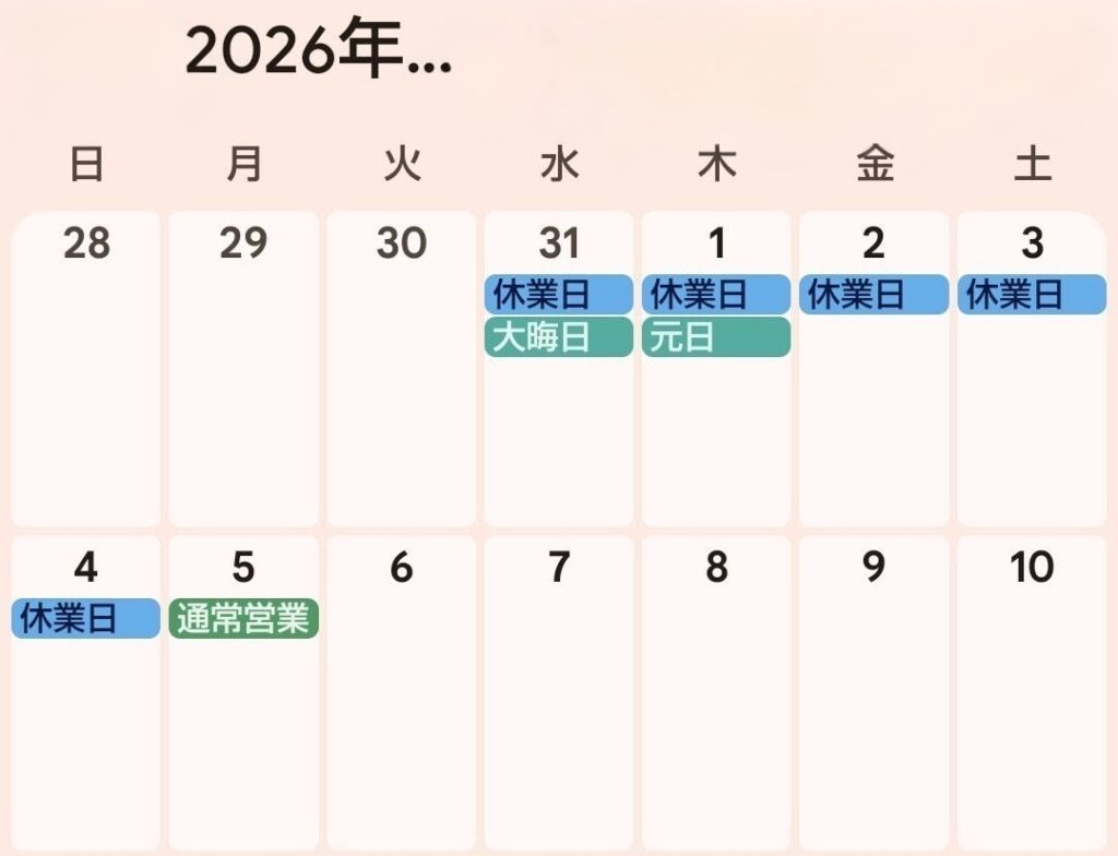 ・2025 年 12 月 31 日 (水)〜 2026年 1 月 4 日(日)までを正月特別休業